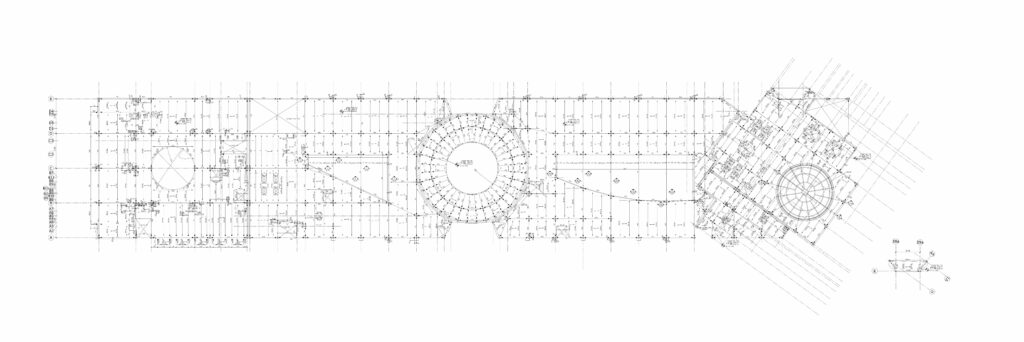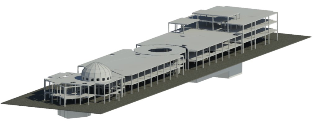 هماهنگی فرم و عملکرد در گرههای پیچیده: سیستم انتقال بار گنبد و قوسها بهگونهای طراحی شد که ضمن تأمین ایستایی، آزادی عمل معماران حفظ شود. جزئیات اتصالات و گرههای پیچیده میان تیرها و قوسها بهدقت مهندسی شدند تا هماهنگی کامل بین فرم و عملکرد سازهای ایجاد گردد.