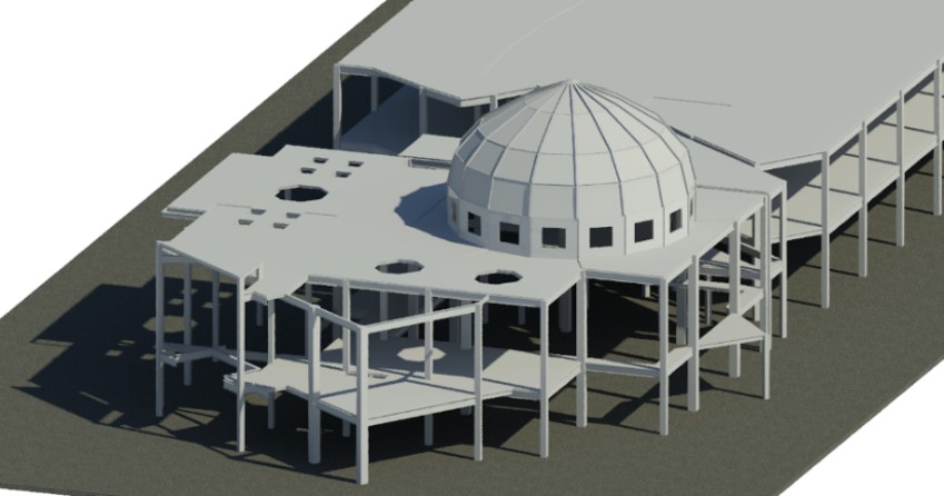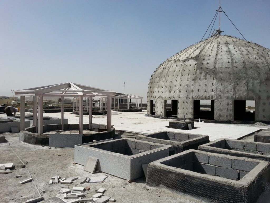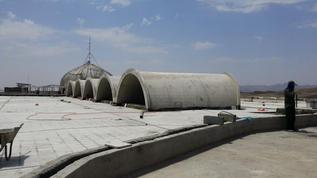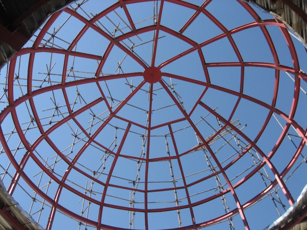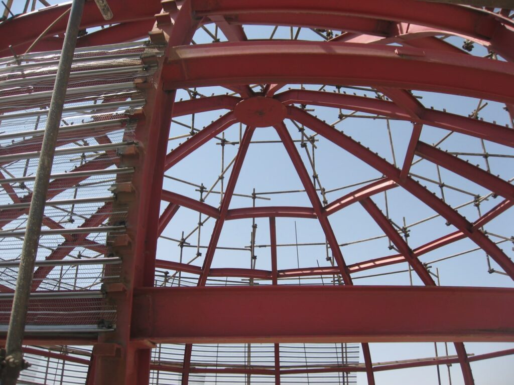 پیشساختهسازی کامل سازه گنبد: گنبد متشکل از سازه فولادی، بهطور کامل در کارخانه پیشمونتاژ گردید تا در محل پروژه، بهصورت کامل و بینقص و با حداکثر سرعت مستقر گردد. این روش، تضمینکننده دقت ابعادی و کیفیت جوشکاری بود.